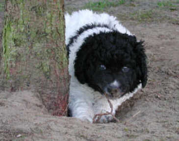 Sein Fell ist für die Wasserarbeit bestens geeignet. Es hat eine fettige, wasserfeste Struktur. Das Haarkleid darf nie wollig sein.